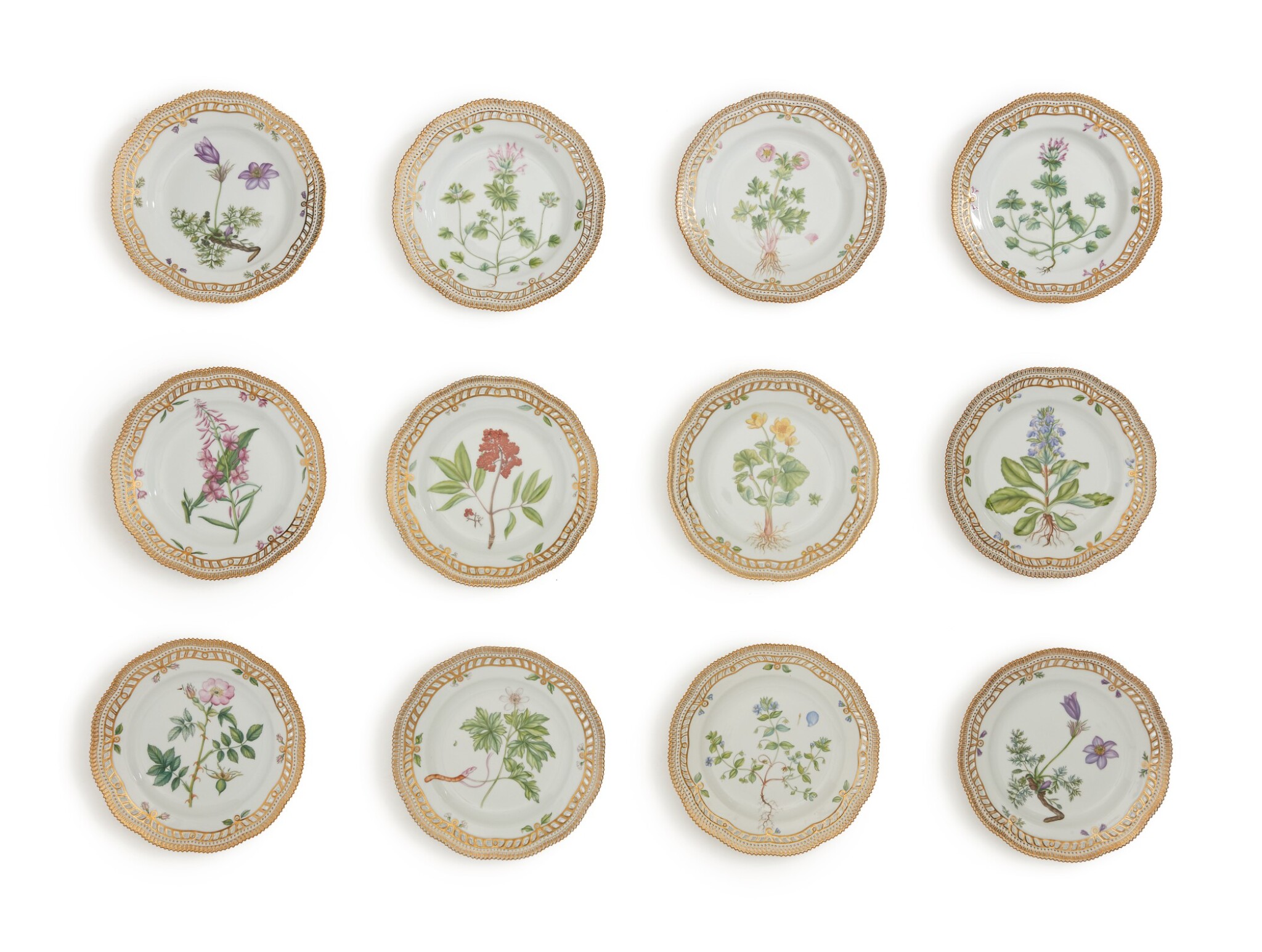 Twelve Royal Copenhagen Flora Danica Reticulated Dinner Plates Modern Dining In New York Sotheby S