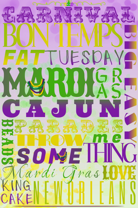Mardi Gras Fett Dienstag Parade Wort Collage Perlen Lila Gold Vorlage Postermywall